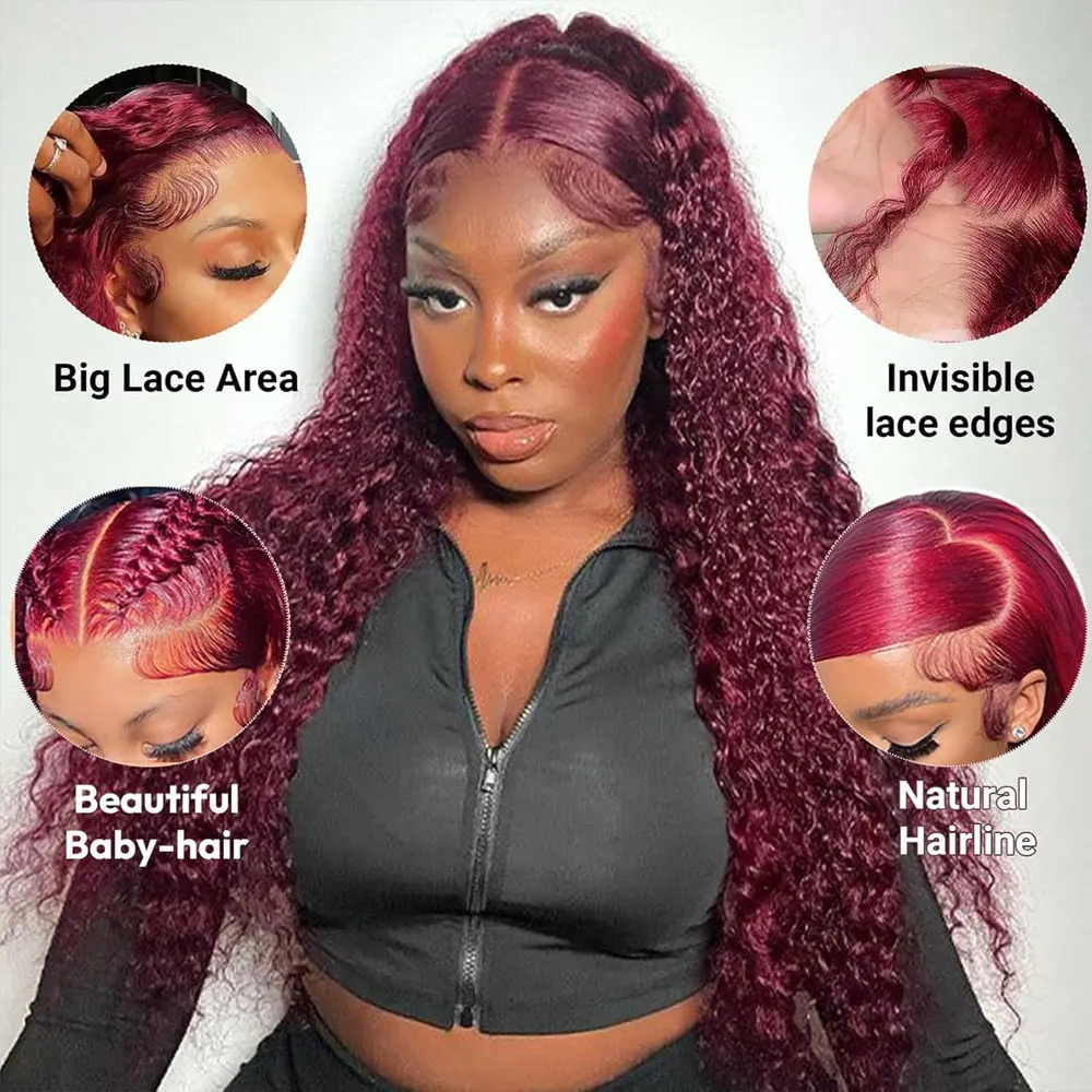 30 Inch Burgundy 99j Deep Wave Frontal Wig Colored Curly Human Hair Wigs 200 250 Density 13x4 Hd Lace Frontal Human Hair Wigs