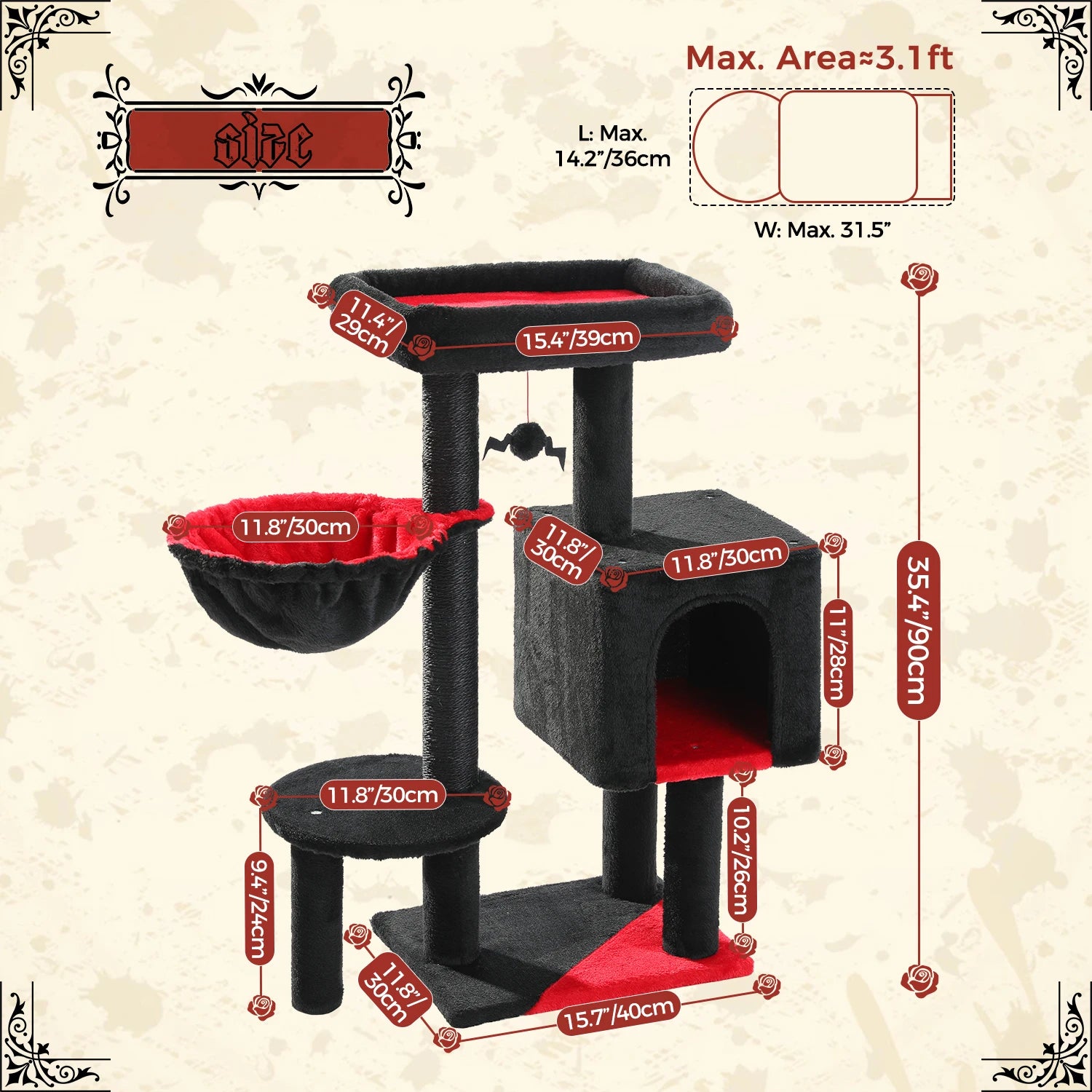 • Ideal Recreation Spots: This cute cactus cat tree has a larger top perch39cm length by29cm widths with thick raised rim provide strong support when cat lied their furry head on on it. The middle condo provide a private space to take a sleep to get away from their busy activities. And the round hammock offer a higher place for curling up to snooze and watch bird in yard.